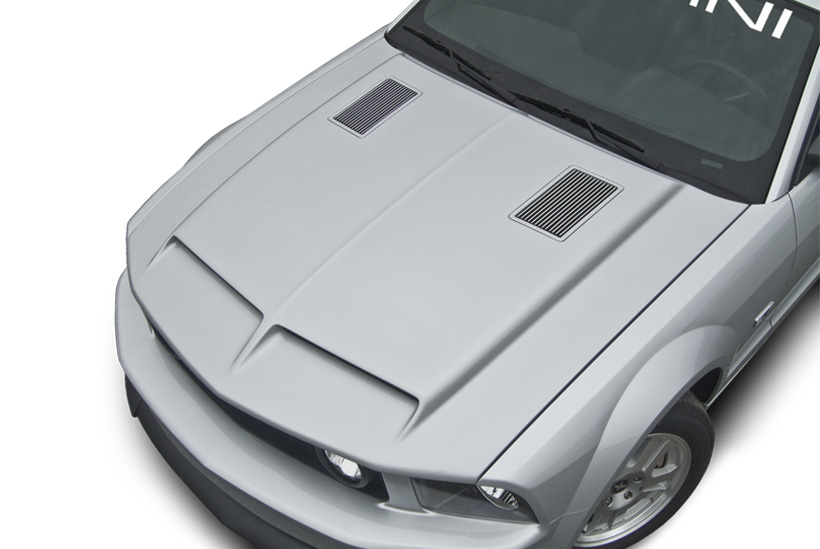Although these hoods don’t have ram air capabilities built into them when you buy them (they do pull in a cold air, however), Cervini’s sells an add-on ram air conversion kit that can be easily installed in your Mustang to turn the hood into a functional showpiece. Add significant horsepower with this one simple mod. (Part#8029 $299.99)