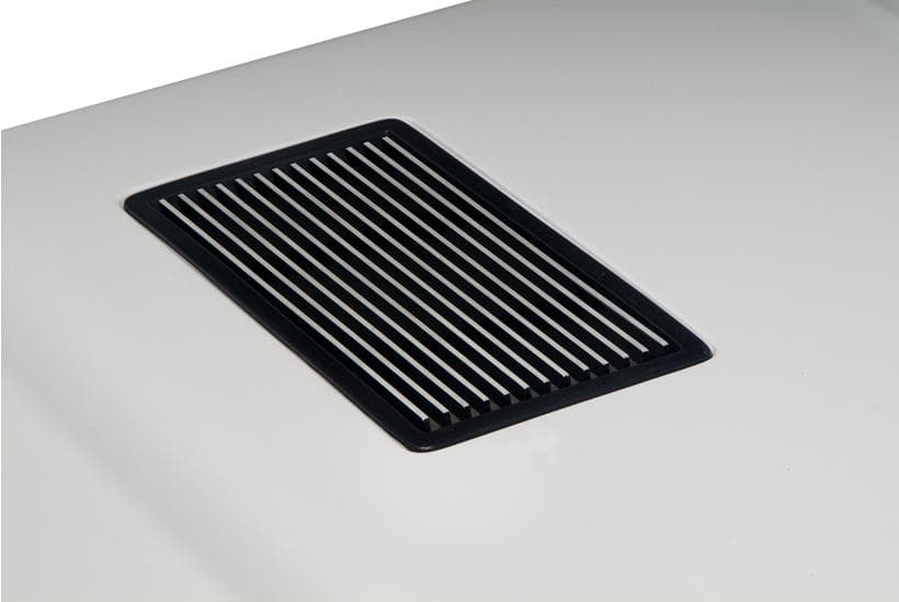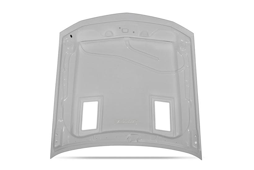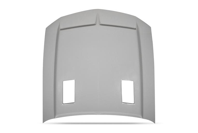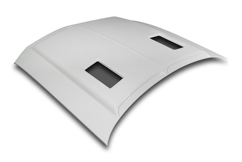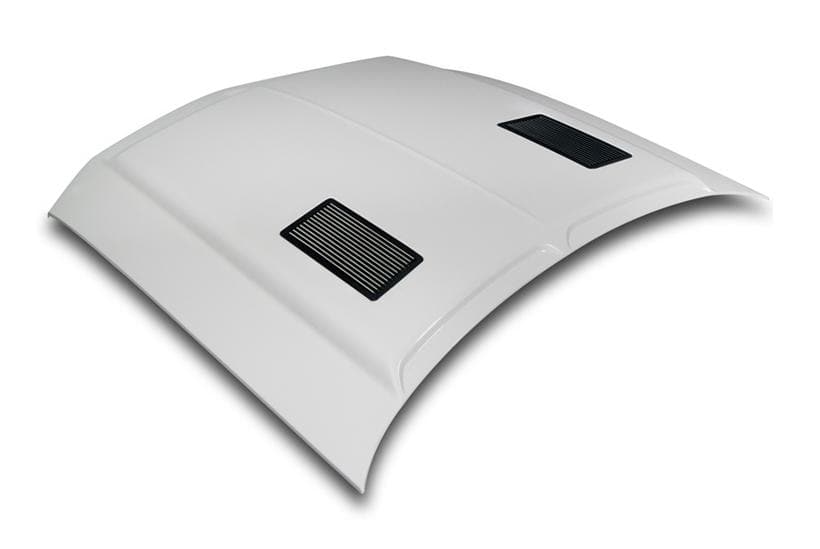 Hood features a fully-finished underside liner for additional strength, Constructed from premium hand laid fiberglass this hood also has pre cut front air ducts