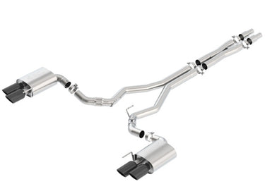 WITHOUT Active Valve Exhaust. NOT recommended for use on Convertibles. 3" diameter system. System contains a merge X-Pipe for increased performance and improved sound. System features Borla(r)'s Polyphonic Harmonizer Technology which utilizes patented units that contain pipes of different diameters and lengths to create multiple exhaust notes that harmonize to deliver a clean, rich, full-bodied sound to the Borla(r) mufflers. The mufflers then enhance this sound to the character and volume appropriate for our Touring, S-Type and ATAK(r) systems. This system also features 4" black chrome on T-304 stainless steel tips. Using Borla(r) Stainless Steel Polish p# 21461 is NOT recommended with these black chrome tips. We suggest cleaning the tips with hot water and a microfiber cloth. Borla(r) Cat-Back(tm) and Axle-Back exhaust systems feature patented straight-through and multi-core technology designed to unleash hidden horsepower. Increased exhaust velocity adds power, driving excitement, fuel economy, and the distinctive Borla(r) Sound of Power respected by motoring enthusiasts everywhere. Each system is built from premium T-304 stainless steel, superior to T-400 series knockoffs (such as 409), to give you the absolute best in performance and durability. Ultra-smooth mandrel bends ensure maximum flow & power, and precision computer numerical control (CNC) manufacturing ensures an accurate fit. Best of all, Borla(r) stands behind every system with a Million-Mile Warranty. Just what you'd expect from the world's most experienced (and most winning) exhaust brand.